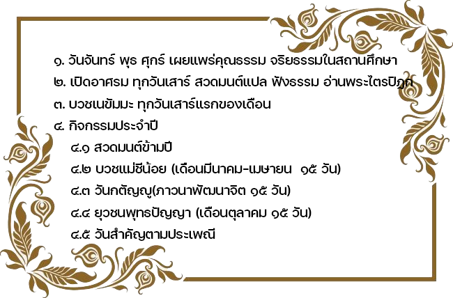 เพื่อให้สุภาพสตรีได้มีสถานที่สำหรับผ่อนพักทางจิตวิญญาน โดยที่นี่มีแนวทางในการปฏิบัติแบบสติปัติฐาน ๔ มีกาย เวทนา จิต และ ธรรม เป็นแนวหลักสำคัญในการปฏิบัติ