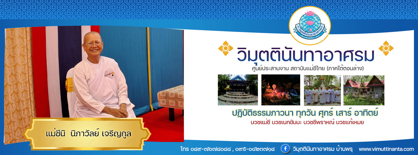 "ธรรมมะคือสัจธรรมของชีวิต" วิมุตตินันทาอาศรม ตั้งอยู่ที่ ต.บ้านพรุ อ.หาดใหญ่ จังหวัดสงขลา ในพื้นที่ ๑๐ ไร่ แวดล้อมไปด้วยสวนยางพารา